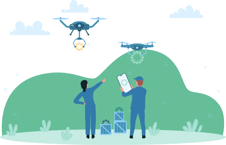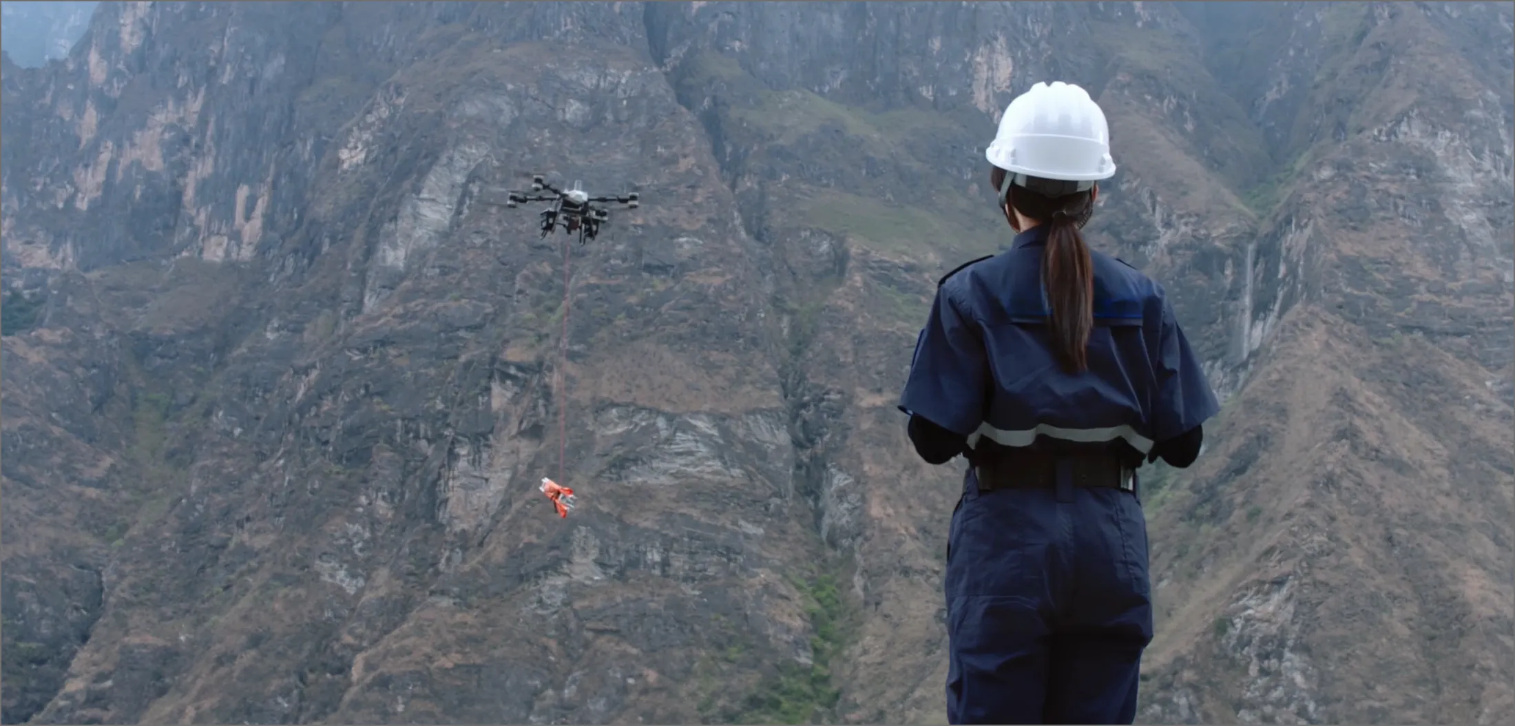 建設業・林業の現場を熟知した当社が、 大型運搬ドローンを用いて 資材運搬業務を請け負います。 現地調査から安全管理、運搬作業まで 一括対応します。
